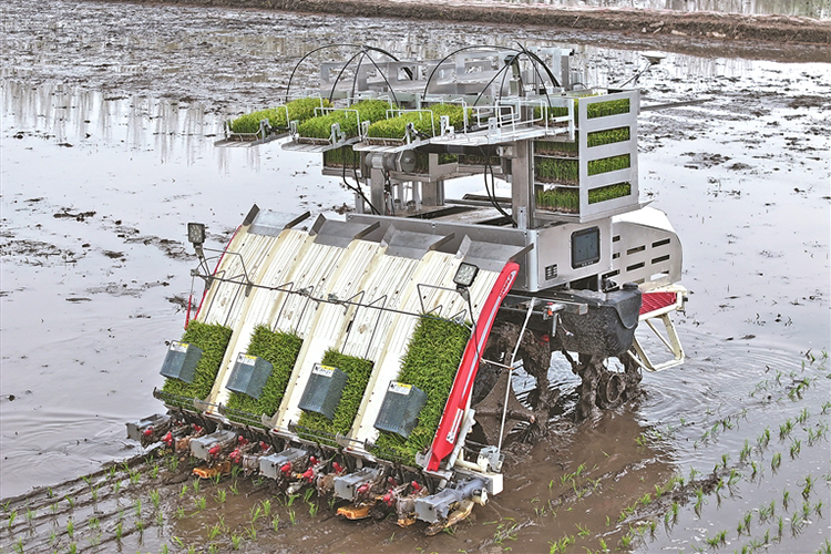 大農(nóng)機(jī)上陣 秧苗好又壯