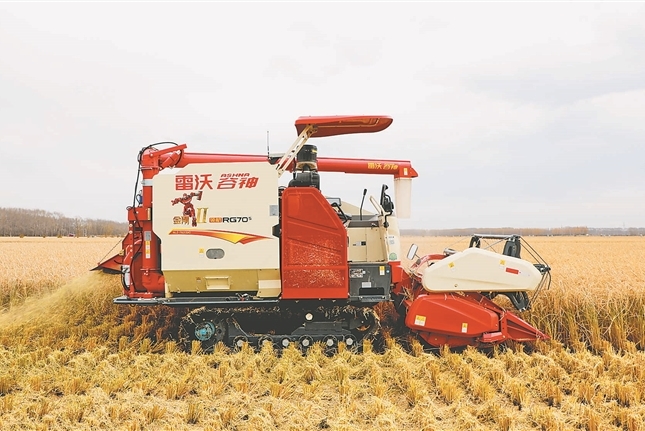 無人駕駛農(nóng)機(jī)助力北大荒水稻收獲作業(yè)