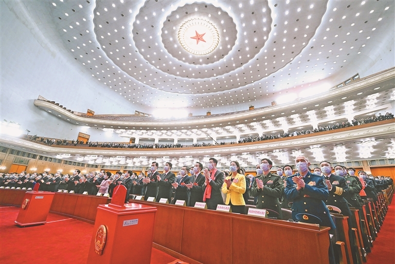 十四屆全國人大一次會議在北京人民大會堂舉行第三次全體會議