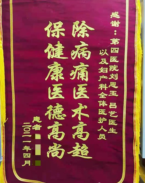 黑龍江經(jīng)濟(jì)網(wǎng)訊(王子豪)在醫(yī)護(hù)人員的精心治療下,董女士終于恢復(fù)了健康,她為哈爾濱市第四醫(yī)院婦產(chǎn)科劉恩玉主任、呂藝醫(yī)生及護(hù)士們送上錦旗,表達(dá)她的滿(mǎn)滿(mǎn)謝意。