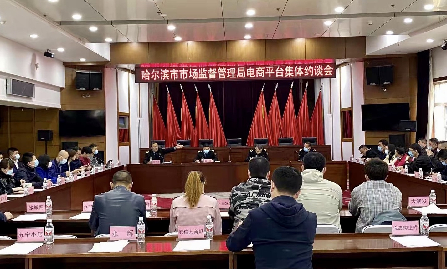 龍頭新聞訊(朱大治 記者 劉莉)近年來,哈爾濱食品、食用農(nóng)產(chǎn)品電商迅猛發(fā)展,已成為市場銷售環(huán)節(jié)的“主力軍”。為確保銷售環(huán)節(jié)主要渠道食品和食用農(nóng)產(chǎn)品安全,督促經(jīng)營者履行食品安全主體責任,針對電商平臺和經(jīng)營者還存在備案登記、公開公示、主體資格審查、進貨查驗等方面不符合要求的問題,23日,哈爾濱市市場監(jiān)督管理局組織美團、京東、拼多多、橙心優(yōu)選等33家電商平臺及22家大型連鎖食品經(jīng)營企業(yè)進行了集體約談。
