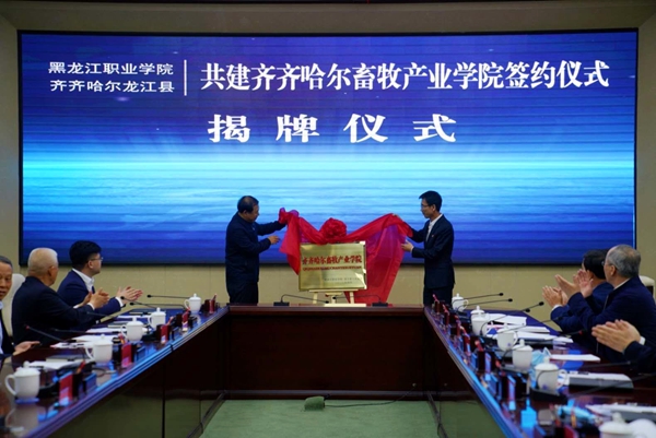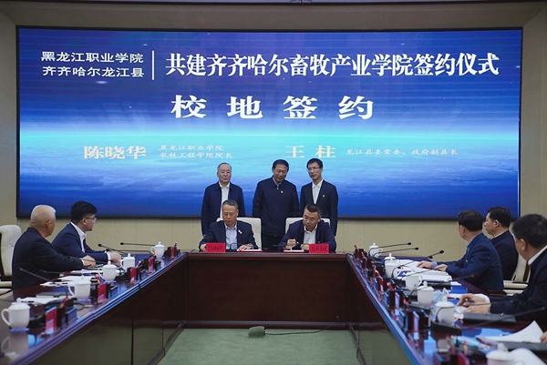 黑龍江經(jīng)濟(jì)網(wǎng)訊(李福山 王鴻儒 記者魏伯勤)為搭建校地校企合作平臺,聚焦產(chǎn)業(yè)人才短板,接軌應(yīng)用型院校人才培養(yǎng)體系,建立產(chǎn)業(yè)人才聯(lián)合培養(yǎng)機(jī)制,4月28日,黑龍江職業(yè)學(xué)院與龍江縣人民政府“共建齊齊哈爾畜牧產(chǎn)業(yè)學(xué)院”簽約儀式在齊齊哈爾市仙鶴賓館舉行。這次簽約是齊齊哈爾市“校企政”合作的一次有益探索,是產(chǎn)業(yè)人才培養(yǎng)、產(chǎn)教融合的新路徑、新載體,是推動齊齊哈爾全市畜牧業(yè)高質(zhì)量發(fā)展的一項重要舉措。