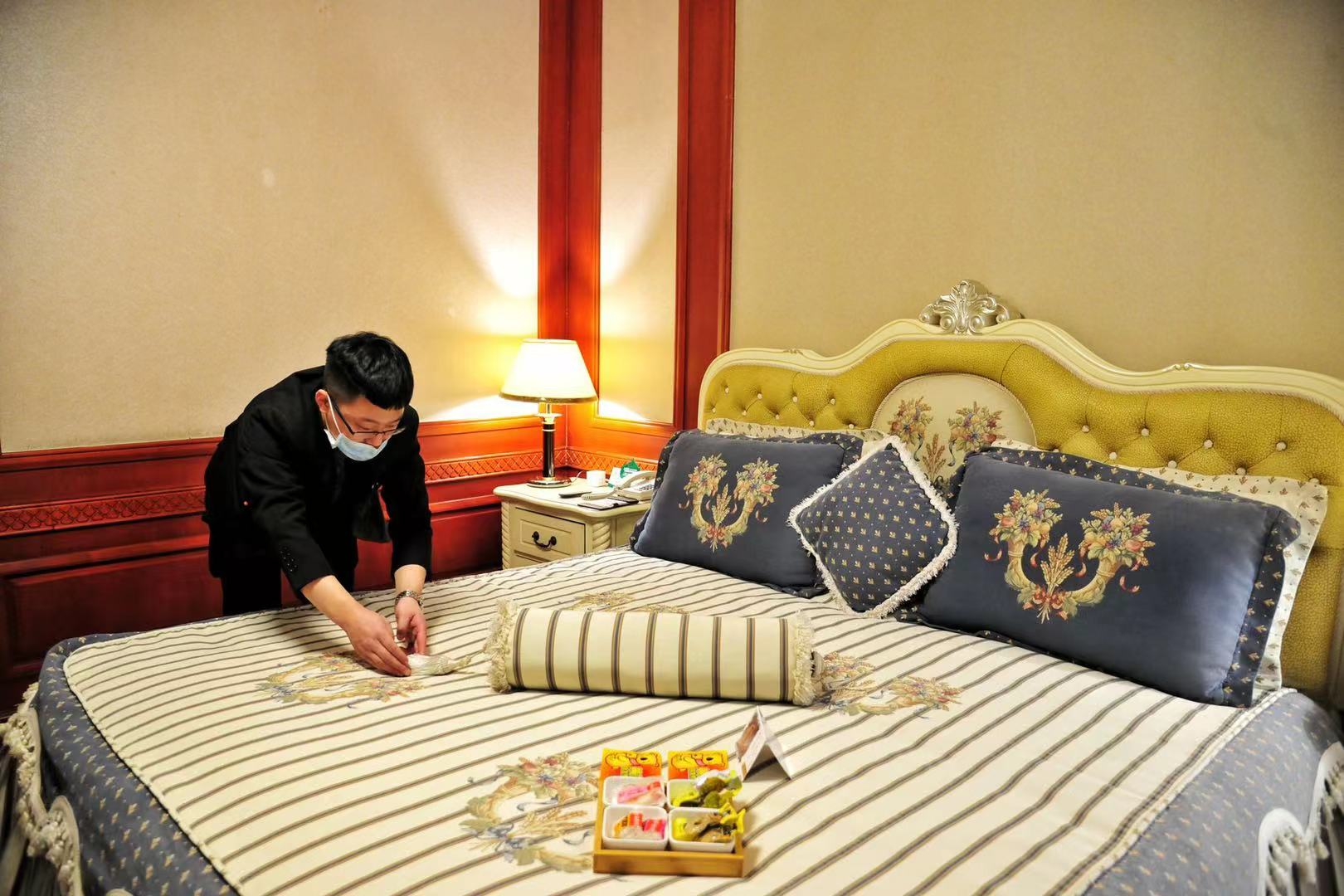 邱冬梅說,為了保證賓客住得安心放心,賓館在疫情防控和安保方面提前做了很多針對(duì)性的工作。進(jìn)入4月初就組織全體員工開展業(yè)務(wù)知識(shí)及專業(yè)技能、酒店禮儀、員工儀容儀表等崗位技能培訓(xùn)。