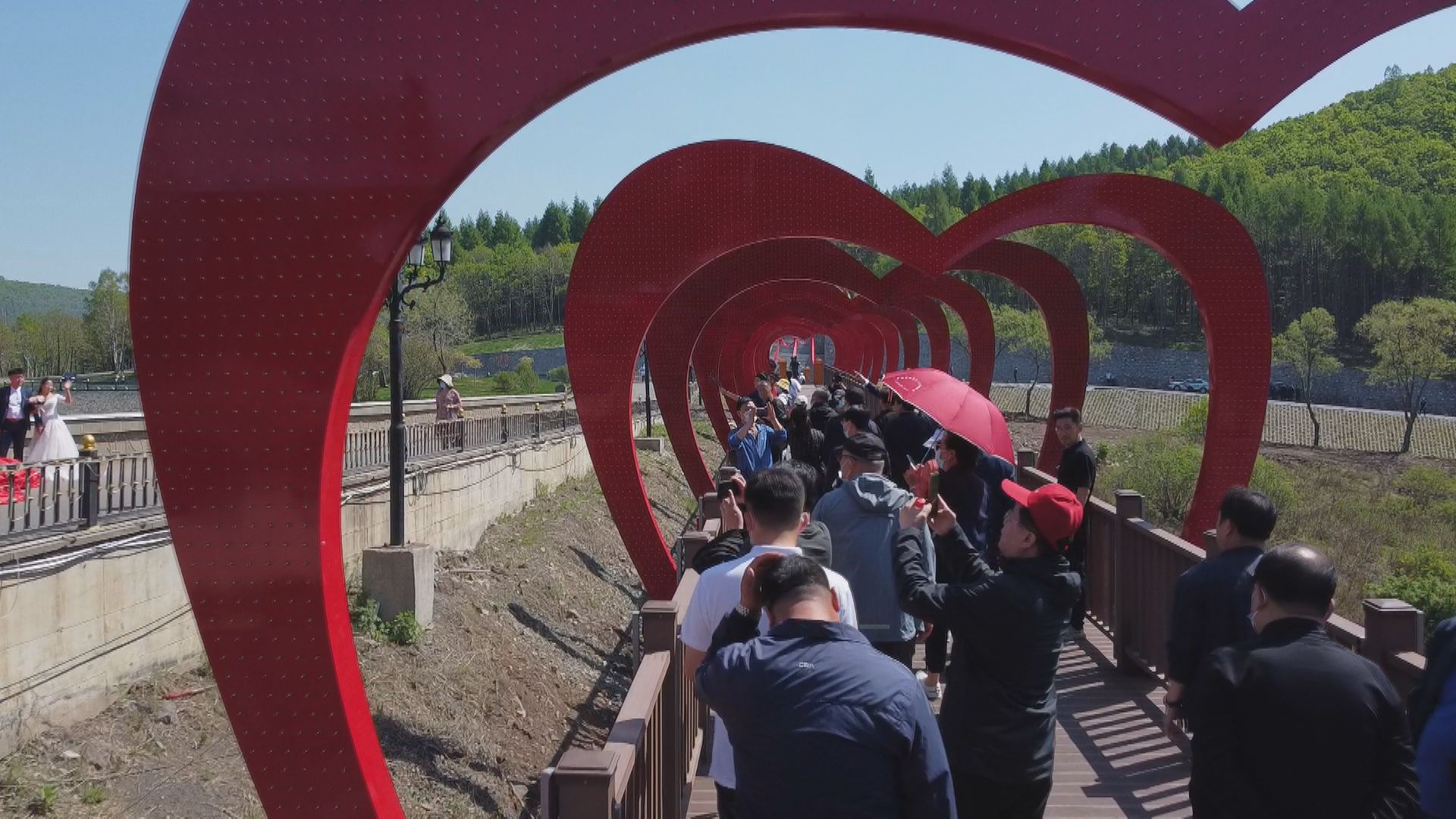 5月的邊城,清風拂面,陽光明媚。位于天長山與地久山間的愛情谷公園湖水清澈,美景如畫。這里東經(jīng)131度,北緯44度,海拔520米,加在一起正是“一生一世我愛你”的諧音,這也是公園名字的由來。