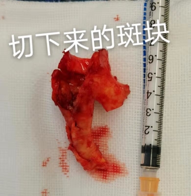 考慮到張大爺既往有腦梗死病史和糖尿病病史,入院后,孫國章副主任團隊為張大爺進行了術(shù)前精準評估,完善頭部核磁共振、全腦血管造影檢查,并控制好血壓、血糖等各項指標。隨后,孫國章副主任在顯微鏡下精準為張大爺實施了頸動脈內(nèi)膜剝脫術(shù),切除了長度約4cm動脈粥樣硬化斑塊。據(jù)了解,由于是在頸動脈上做手術(shù),對手術(shù)技術(shù)及條件要求非常高,孫國章副主任在術(shù)中克服種種困難,才最終憑借豐富的臨床經(jīng)驗成功完成此次手術(shù)。