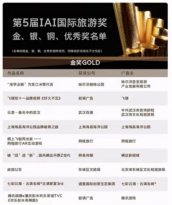 據(jù)了解,IAI國際旅游獎是知名的綜合性廣告與品牌營銷賽事評選,是國際化的旅游營銷及行業(yè)運營評選活動。國內(nèi)眾多營銷及廣告類重量級機構(gòu)參與角逐,此次組委會共收到779家公司報送的3083件作品及案例,由270多位來自各領域的專家組成的終審團進行評審。