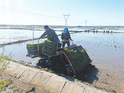 坤站村稻豐糧食種植農(nóng)民專業(yè)合作社理事長楊軍介紹,受氣溫影響,今年插秧比往年延遲一周左右,為了把時(shí)間搶回來,合作社社員起早貪黑,從早晨四點(diǎn)多就開始插秧。合作社今年種植水稻面積3000多畝,為抗低溫、保全苗、奪高產(chǎn),全部采用機(jī)械化插秧,一臺插秧機(jī)每天可插秧50畝。楊軍說,去年建設(shè)的水稻公園成為游客網(wǎng)紅打卡地,今年在稻田公園新設(shè)計(jì)一個(gè)慶祝建黨100周年和鄉(xiāng)村振興的彩繪圖案,助力鄉(xiāng)村旅游業(yè)發(fā)展。