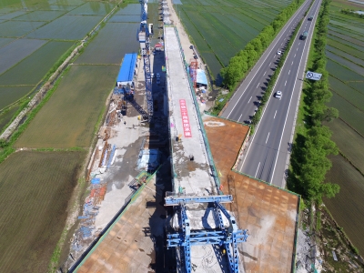 中鐵二十局佳鶴鐵路二分部經(jīng)理魏偉介紹,作為全線跨度最大的連續(xù)梁,該橋跨越鶴大高速公路,施工中需分節(jié)段澆筑混凝土,技術(shù)標(biāo)準(zhǔn)要求高、安全風(fēng)險大。