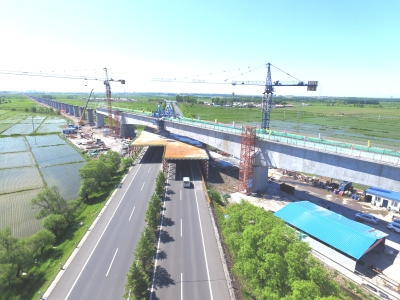 跨鶴大高速公路特大橋位于黑龍江省鶴崗市境內(nèi),連續(xù)梁的合龍模式為先邊跨、后中跨,該橋全長8393.84米,是全線最長的特大橋和控制性工程。