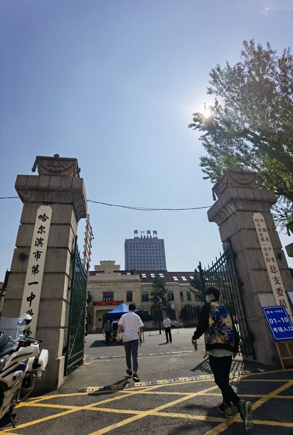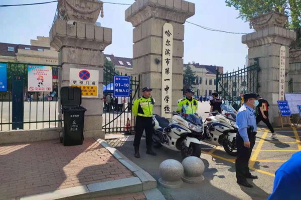 今早8點,哈爾濱市第一中學(xué)門前雖然人頭攢動,但車減速,人低語。