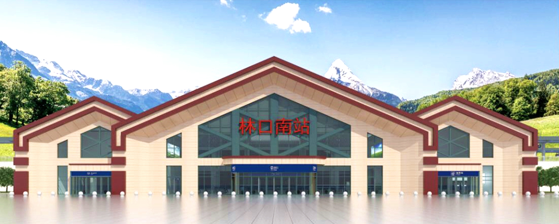 林口南站建筑面積2998.19平方米,可容納800旅客候車。設2條正線,2條到發(fā)線,站房外觀設計如同“林中木屋”,融入林口縣特有的“山水神秀”文化底蘊,給人以厚重堅實之感,并將英雄之城的紅色文化融入其中,象征城市精神如山巒屹立。兩側較小體塊烘托中部門式造型,窗格構件相互交織,如森林霧凇,體現(xiàn)寒冷地區(qū)建筑特質(zhì),具有雪原建筑意向。車站穩(wěn)重大氣、簡潔壯麗,通過現(xiàn)代建筑語言詮釋了站房的人文之靈,彰顯現(xiàn)代交通建筑特征。