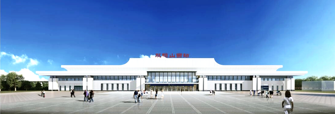 雙鴨山西站建筑面積9997.9平方米,設2條正線,3條到發(fā)線。以“農(nóng)林盛地,昂揚煤城,融匯文脈,合于自然”為設計理念。建筑形體通過極強的橫向?qū)哟?,呈現(xiàn)向中心聚集的趨勢,中心高兩側低類似于山脈的建筑天際線與橫向線條結合給人以綿延不絕的感覺,寓意城市文化及歷史如山如水般源遠流長。建筑整體造型著重體現(xiàn)雙鴨山市的煤城特色和豐富的農(nóng)林資源,其煤炭相關產(chǎn)業(yè)一直作為城市建設發(fā)展的重要支柱,建筑主立面采用四根厚重有力的支撐柱,以表現(xiàn)這一理念,同時深入挖掘并體現(xiàn)雙鴨山市特有的文脈及自然特色。