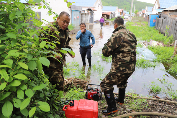 阿木爾林業(yè)局森林消防隊(duì)員在人民街排內(nèi)澇