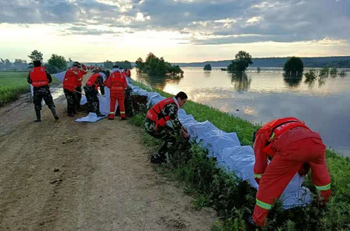 圍繞民生保障,辦急事、破難題。塔河林業(yè)局黨委始終堅持以人民為中心的發(fā)展理念,時刻把人民利益擺在至高無上地位。一方有難,八方支援,按照集團(tuán)公司的要求部署,塔河林業(yè)局出動人員440余人,各類車輛和機(jī)械43臺,轉(zhuǎn)戰(zhàn)塔河縣開庫康鄉(xiāng)、依西肯鄉(xiāng)、呼瑪縣鷗浦鄉(xiāng),面對復(fù)雜嚴(yán)峻的汛情洪澇形勢,林業(yè)局帶隊領(lǐng)導(dǎo)迅速做出決策部署,組建防汛救災(zāi)指揮部,集結(jié)“黨員先鋒隊”。全體黨員不畏艱險、率先垂范、靠前作戰(zhàn);全體防汛救災(zāi)隊員不懼洪水,不畏高溫,逆水而行,裝卸沙袋、加筑江堤、封堵管涌,經(jīng)過8個晝夜的連續(xù)奮戰(zhàn),林業(yè)局防汛救災(zāi)隊安全、圓滿地完成了防汛救災(zāi)各項(xiàng)任務(wù),以實(shí)際行動詮釋了“救民于水火、助民于危難”的使命擔(dān)當(dāng)。