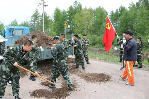 圍繞突出問題,辦好事、解民需。塔河林業(yè)局各基層單位在為民辦好事上下功夫,千方百計解決職工群眾關(guān)注的堵點(diǎn)、焦點(diǎn)問題,切實(shí)把黨史學(xué)習(xí)成效轉(zhuǎn)化為解民需的強(qiáng)大動力。防火辦黨委組織黨員干部組成行動黨小組深入到受汛情影響較為嚴(yán)重的居民群眾家中清理積水、立院墻和板杖子、搬運(yùn)煤塊等勞動,切實(shí)解決了群眾水淹后帶來的生活實(shí)際問題;瓦拉干林場黨委積極響應(yīng)“一團(tuán)五盟”號召,協(xié)調(diào)瓦拉干派出所,聯(lián)合開展了“林地融合辦實(shí)事,修繕公路暖民心” 黨建聯(lián)盟主題活動,林場、鎮(zhèn)政府、派出所共有100余名職工參與,林場出動裝載機(jī)、運(yùn)土車各一輛,運(yùn)送填坑土料40余立方米,將長達(dá)3.5公里的坑洼路面及時進(jìn)行了修繕,著力解決職工居民出行難問題,確保進(jìn)場公路安全暢通。
