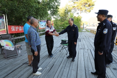 在與游客的交談中,姜明君向游客介紹了漠河市的風(fēng)土人情,了解他們對景區(qū)管理、旅游開發(fā)規(guī)劃、旅游產(chǎn)品等方面的建議,征求他們對公安民警在護游、便民服務(wù)及正在開展的“平安之夏”大會戰(zhàn)等方面的意見,同時向游客宣傳防電信詐騙知識,指導(dǎo)他們下載安裝“國家反詐中心”APP,提高安全防范意識,避免上當(dāng)受騙。