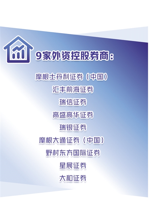 截至目前,外資控股券商已達(dá)到9家,分別為摩根士丹利證券(中國(guó))、匯豐前海證券、瑞信證券、高盛高華證券、瑞銀證券、摩根大通證券(中國(guó))、野村東方國(guó)際證券、星展證券和大和證券。