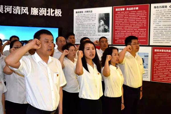 在漠河市廉政教育基地,塔河林業(yè)局研學(xué)交流團(tuán)成員在講解員生動的講解下,依次參觀了“以古鑒今 廉潔中華”、“正風(fēng)肅紀(jì) 馳而不息”、“前車之鑒 警鐘常鳴”、“清正為民 廉潔風(fēng)范”四個篇章。通過一個個觸目驚心的腐敗案例、一幅幅發(fā)人深省的圖片和當(dāng)事人的懺悔實(shí)況錄像,對現(xiàn)場每一個人給以強(qiáng)烈的心靈震撼,進(jìn)一步提高了大家對反腐倡廉重大意義的認(rèn)識和感悟,筑牢防腐拒變思想防線。在深受警示教育的同時,研學(xué)交流團(tuán)全體黨員干部高舉右拳,面對黨旗莊嚴(yán)宣誓,重溫入黨誓詞,并在“廉潔宣誓化于心,廉潔承諾重于行”橫幅上鄭重簽下自己的名字,表達(dá)了一定要樹牢不忘初心、勇?lián)姑?、廉潔從政的信念和決心。