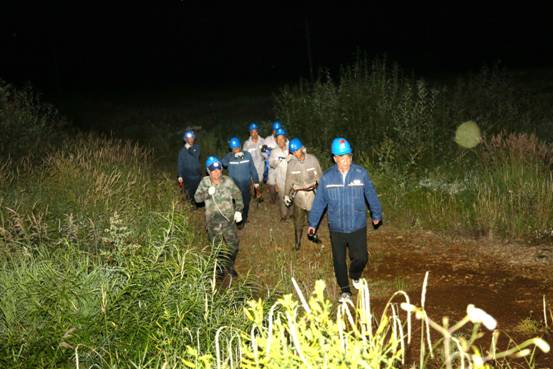 前來馳援的國網(wǎng)大興安嶺供電公司輸電運檢中心和呼中區(qū)、新林區(qū)輸電運檢中心職工共計35人,5臺搶修車輛,分成4組,穿林越嶺巡查輸電線路,克服蚊蟲叮咬、道路崎嶇、林密濕滑難行的困難,經(jīng)過艱苦耐心細致地排查,發(fā)現(xiàn)呼碧線12號電線桿絕緣子被雷擊損,并快速更換。