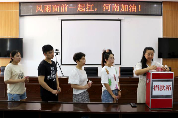 7月23日上午,捐款儀式在辦公樓五樓會議室舉行,干部職工紛紛慷慨解囊,50元、100元、200元……一份份愛心在這里匯聚傳遞。災(zāi)害無情,人有情,參加捐款的干部職工一起在“風(fēng)雨面前一起扛,河南加油!”的條幅上簽名,表達自己的心情,為河南人民加油打氣。目前,捐款款項已匯至紅十字會。