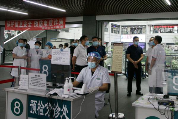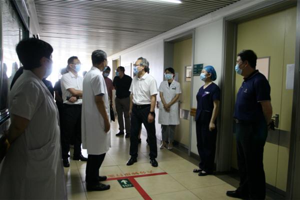 趙煒明一行先后到附屬第一醫(yī)院門診預檢分診處、呼吸科門診、耳鼻咽喉科門診、心血管病一科病房等處進行實地檢查,并聽取附屬第一醫(yī)院黨委書記李建民關(guān)于院感防控工作的詳細匯報。