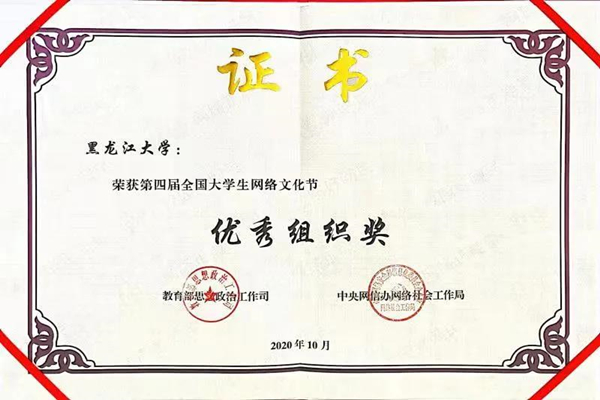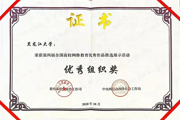 黑龍江大學(xué)一直高度重視網(wǎng)絡(luò)思政教育,曾獲全國大學(xué)生網(wǎng)絡(luò)文化節(jié)優(yōu)秀組織獎、全國大學(xué)生網(wǎng)絡(luò)文化節(jié)和全國高校網(wǎng)絡(luò)教育優(yōu)秀作品推選活動一等獎、二等獎等多項榮譽(yù)。作為黑龍江省高校網(wǎng)絡(luò)思政中心的依托建設(shè)高校,黑龍江大學(xué)承辦了3屆黑龍江省大學(xué)生網(wǎng)絡(luò)文化節(jié)和黑龍江省高校網(wǎng)絡(luò)教育優(yōu)秀作品推選展示活動,累計評選5000余件黑龍江省高校優(yōu)秀師生網(wǎng)絡(luò)文化作品,并推選出1882件黑龍江省優(yōu)秀高校師生作品參加全國評選。今后,黑龍江大學(xué)將繼續(xù)強(qiáng)化思想引領(lǐng),聚焦立德樹人,依托黑龍江省高校網(wǎng)絡(luò)思政中心,引領(lǐng)全省高校構(gòu)建新時代高等教育網(wǎng)絡(luò)思想政治工作體系。