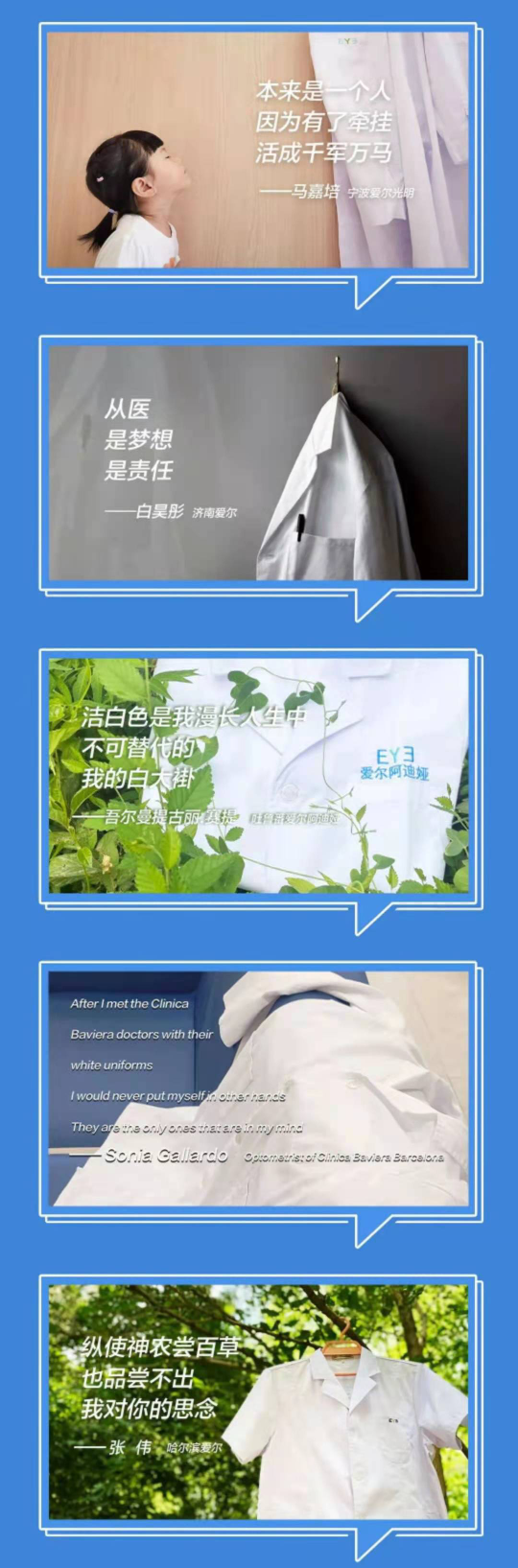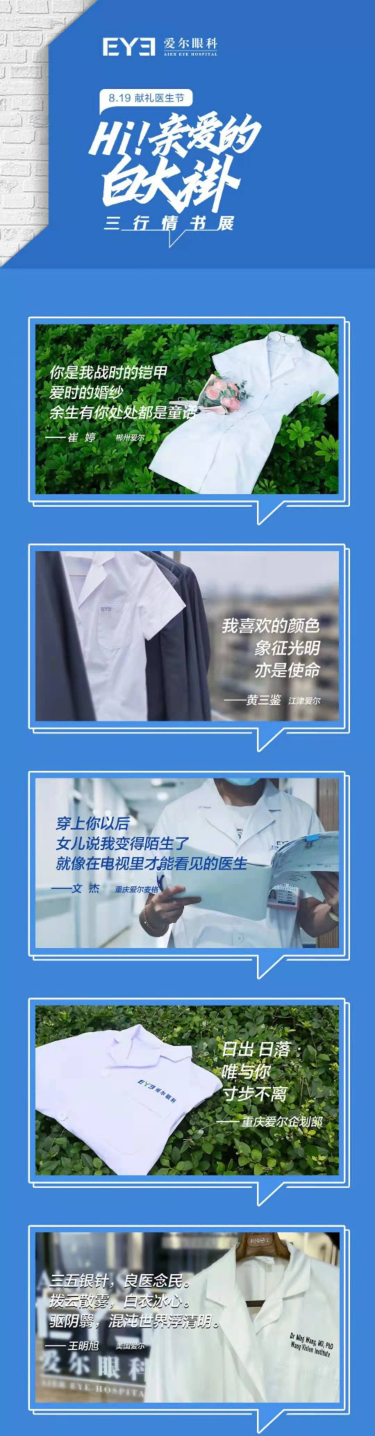除了溫情脈脈、感動滿滿的系列微電影,愛爾眼科還啟動了醫(yī)師節(jié)“三行情書”征集活動。溫柔細致、多才多藝的醫(yī)生們,用他們或細膩、或豪放的筆觸,寫下了自己對“白大褂”真摯的情感。活動開展以來,共收到海內(nèi)外情書作品近2000件,最終此次活動共評選出“最美情書”、“最佳告白”共100個優(yōu)秀作品。(愛爾眼科)