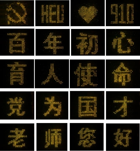 黨徽、HEU(哈工程縮寫)、愛心、9.10、百年初心、育人使命、為黨育人、為國育才、老師您好……同學(xué)們匯聚力量共同拼出了24組圖案和字樣,即使天空飄起毛毛細(xì)雨,他們也絲毫沒有變換位置,在雨中足足站了兩個小時。2021級博士生王文軒感慨:“作為一名本、碩都就讀于哈工程的學(xué)生,這所大學(xué)的老師教會了我如何做人做事做學(xué)問,我們用這場燈光秀,獻(xiàn)禮我們最尊敬的老師,我們也一定會傳承哈軍工精神,勇?lián)鷱妵倌晔姑鼡?dān)當(dāng)?!?/span>