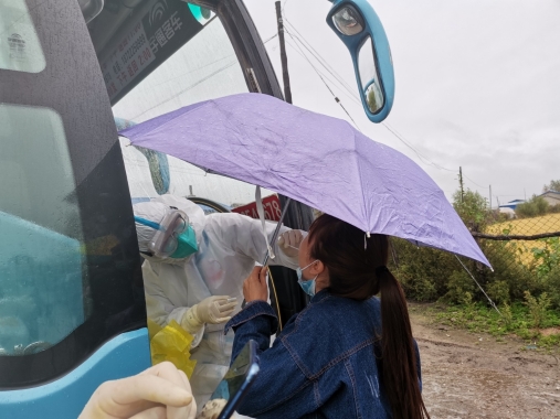 省醫(yī)院南崗院區(qū)中心手術(shù)室護士趙明裕,中秋節(jié)當天下午正在家中給八歲的大女兒過生日,接到通知需要支援巴彥縣核酸采集,親了親身邊的大女兒和四歲的小女兒,立即驅(qū)車前往醫(yī)院。到達巴彥后,趙明裕被分到后山鄉(xiāng),三人小組同組另兩位隊員都是年過40歲的大姐,已經(jīng)是預備黨員的趙明裕想想自己年輕一定要多干些,主動請纓承擔了更多的工作。當天,三人共完成了五個村屯近600人的采集,外面陰雨綿綿,氣溫驟降,手消涂在手套上,全手掌冰涼的感覺讓趙明裕本就著裝不多的身體愈發(fā)冰冷,但想到臨行前醫(yī)院同事一次次的叮嚀與囑托,她心中堅信,抗疫必勝。同時當?shù)卮迕竦臒崆橐沧屭w明裕的心里暖暖的,后山鄉(xiāng)政府的工作人員和人民群眾都非常積極的配合,尤其是老人和小孩,并沒有由于天氣陰雨綿綿的原因而不配合,都在鄉(xiāng)領(lǐng)導的指揮下,井然有序的配合著。