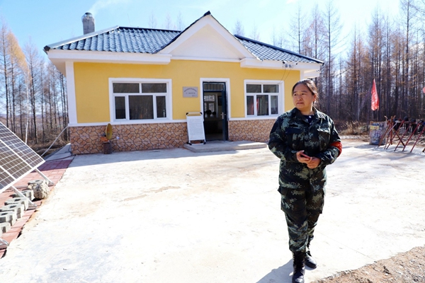 圖為紅旗林場(chǎng)第九管護(hù)站管護(hù)員董翠杰正在認(rèn)真堅(jiān)守崗位