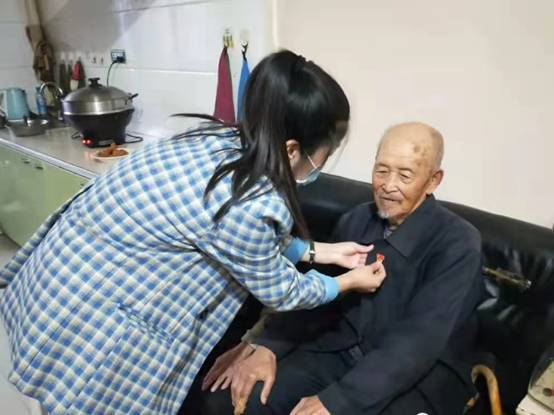 情系老黨員,踐行初心學黨史。社區(qū)黨總支書記來到老黨員單茂功家,老人今年已經(jīng)92歲,身體一直不好,書記詳細詢問了他最近的身體情況和生活中存在的困難,并叮囑他們保重身體,祝福他們健康長壽。最后,社區(qū)書記為老黨員戴上黨徽,與老黨員共同回顧黨的光輝歷史,傳承紅色精神,老人非常的感動,對社區(qū)的關心表示感謝。