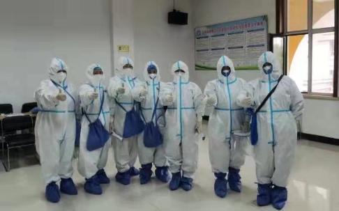 自2020年1月感染內(nèi)科全體醫(yī)護(hù)承擔(dān)起發(fā)熱門診此項(xiàng)艱巨任務(wù),一樓設(shè)立為發(fā)熱門診留觀室,二樓為核酸未出結(jié)果者緩沖病房,三樓、四樓為核酸陰性但尚未解除隔離的留觀病房。此次根據(jù)疫情防控要求,在原本樓層多,醫(yī)護(hù)工作“戰(zhàn)線”長(zhǎng)的情況下,還特別設(shè)立了“巴彥”疫區(qū)專屬樓層。來(lái)自風(fēng)險(xiǎn)區(qū)患者就診時(shí),在隔離區(qū)的一名醫(yī)生和一名護(hù)士每個(gè)班次經(jīng)常工作6-8小時(shí),樓上樓下的反復(fù)奔走,裹著密不透氣的防護(hù)服,汗水濕透衣背。長(zhǎng)時(shí)間的不能喝水吃飯如廁,挑戰(zhàn)人體生理忍耐極限,但從未有人叫苦委屈。白班的同志在結(jié)束日間工作后,為了解決科室人員少,且工作量大的情況,主動(dòng)留下加班到很晚,而第二天還要支援社區(qū)全員核酸采集任務(wù)。