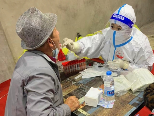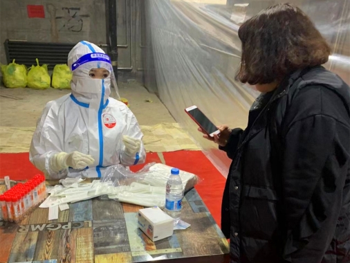 10月30日下午17時(shí),畢贏接到單位領(lǐng)導(dǎo)的通知,準(zhǔn)備好支援社區(qū)核酸采集,有可能今晚22點(diǎn)開始,有可能明早8點(diǎn)開始。就這樣,畢贏趕緊通知親戚朋友婚禮暫時(shí)取消,馬上要去社區(qū)支援。10月31日早8點(diǎn),由省醫(yī)院吳丹紅護(hù)士長帶隊(duì),畢贏一行40名護(hù)士下沉到了新香坊鎮(zhèn)社區(qū)為那里的居民進(jìn)行核酸采集支援。就這樣,婚紗面前畢贏毅然決然地選擇了防護(hù)服,和她的戰(zhàn)友們并肩奔赴社區(qū)支援核酸采集,因?yàn)樗酪咔檫^后的婚禮才會更有意義。