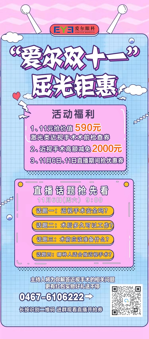 雞西愛爾眼科醫(yī)院近視手術雙十一鉅惠來襲!