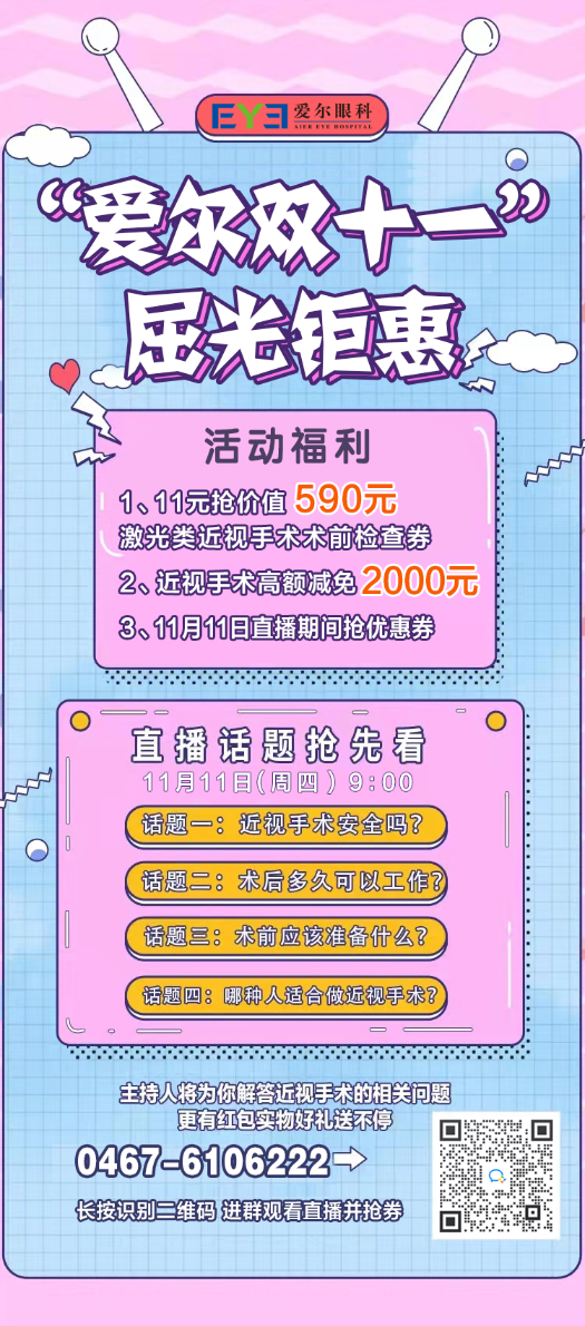 雞西愛爾眼科醫(yī)院近視手術(shù)雙十一鉅惠來(lái)襲!