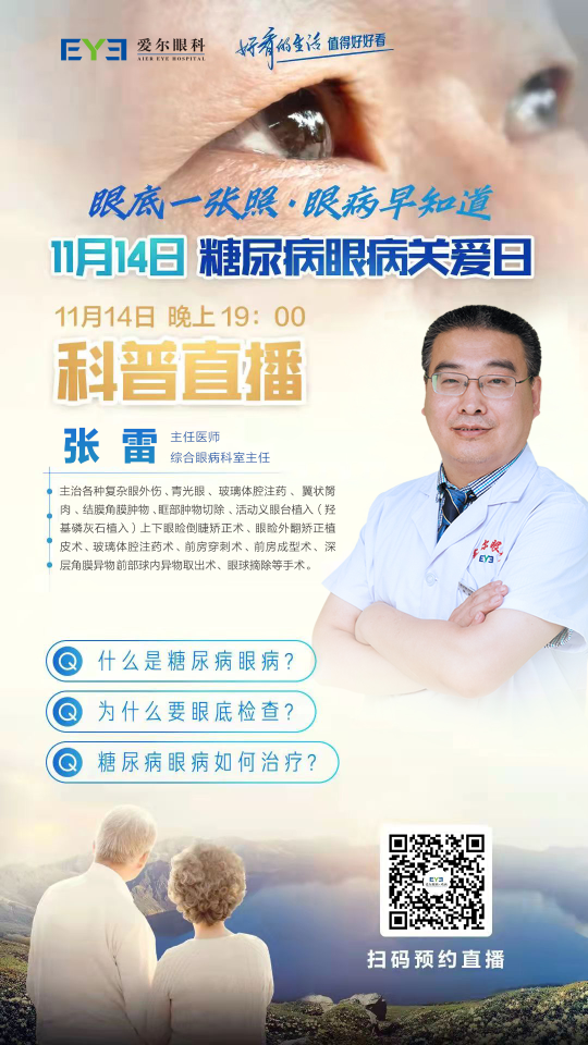 為提高糖尿病患者對糖尿病眼病的認知、加強自我保健意識,雞西愛爾眼科醫(yī)院將11月14日晚19:00舉辦糖尿病眼病關愛視頻號直播,通過科普講座與答疑互動的方式,全面講解糖尿病眼病的相關知識,幫助您和家人解決眼健康煩惱。