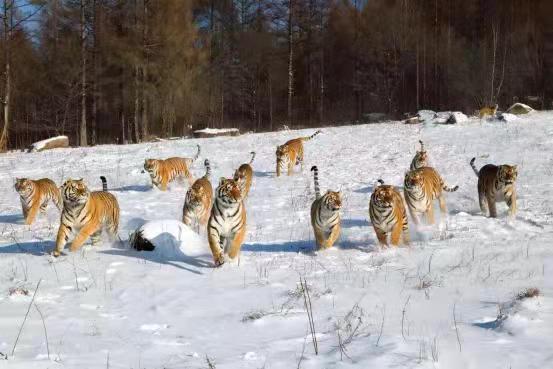 令人震撼的鏡泊湖吊水樓的冰瀑是牡丹江冬季的重要景點(diǎn)之一。在冰凌交錯(cuò)、銀裝素裹的純凈世界里,世界吉尼斯紀(jì)錄創(chuàng)造者——中國(guó)懸崖跳水奇人狄煥然,在零下二十多度的鏡泊湖吊水樓冰瀑上,伸展雙臂,凌空一躍,撲向不結(jié)冰的黑龍?zhí)端妫肼洳罱?0米的水中,成為鏡泊湖景區(qū)冬季的一道獨(dú)特景觀。鏡泊湖水系水質(zhì)較好,水產(chǎn)資源極為豐富,大約有六十多種魚,冬季體驗(yàn)鏡泊湖的大網(wǎng)捕魚、小網(wǎng)掛魚,在每年辭舊迎新之際看一場(chǎng)冬捕,絕對(duì)是預(yù)示著年年有余好兆頭的絕佳體驗(yàn)。在漁夫們高亢的號(hào)子聲中,800多米長(zhǎng)的大網(wǎng)從冰洞中漸漸滑出,胖頭魚、鯽魚、鯉魚等翻滾著、跳躍著,冒著熱氣蹦到冰面,“萬(wàn)尾鮮魚出玉門”的奇觀景象讓人感嘆不已。橫道東北虎林園是世界上最大的東北虎人工飼養(yǎng)繁育基地和野化訓(xùn)練基地。在幾代養(yǎng)虎人的辛勤努力下,已繁育活體東北虎1100余只,建有猛虎園、靈長(zhǎng)類館、幼虎生態(tài)館、高空玻璃棧道、珍稀動(dòng)物觀賞園、科普展覽館、觀虎長(zhǎng)廊、虎文化廣場(chǎng)等多個(gè)景點(diǎn)。在這里,可以感受到獸中之王奔跑在蒼茫林海雪原的風(fēng)馳電掣。也可以感受到成群東北虎躺臥在皚皚白雪“互談心事”的百般愜意,還可以領(lǐng)略到虎牛相斗、群虎撲食的驚險(xiǎn)刺激。
