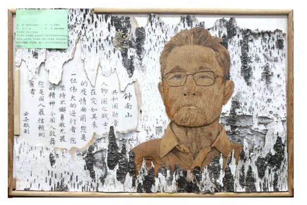 作品“生命衛(wèi)士鐘南山”采用大興安嶺原始森林優(yōu)質樺樹皮粘貼而成,畫中鐘南山院士表情凝重,目光堅毅,展現(xiàn)了一名共產(chǎn)黨員面對疫情無私奉獻的決心。作品“蘭閨雅集圖”,情致盎然、祥和靈動,給人以和諧、溫馨,讓人心生美好。