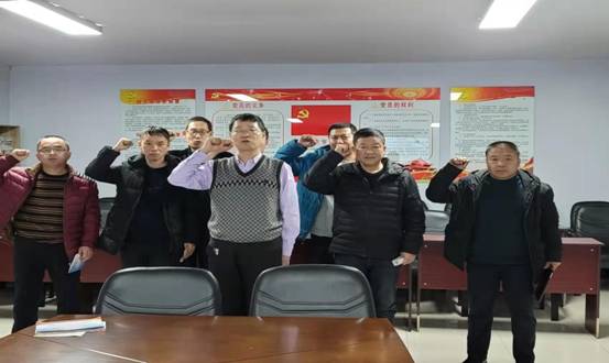 在中國共產(chǎn)黨入黨誓詞展示墻前,黨員干部們面向黨旗,高舉右手,重溫了入黨誓詞,我志愿加入中國共產(chǎn)黨,擁護黨的綱領......隨時準備為黨和人民犧牲一切,永不叛黨。回憶入黨過程加固不忘初心、牢記使命,永葆共產(chǎn)黨員政治本色的堅定政治信念。