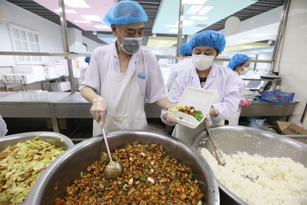 消化內(nèi)科16個(gè)月大的患兒浩浩是過(guò)敏體質(zhì),因發(fā)熱、腹瀉、進(jìn)食后嘔吐住院治療,這個(gè)孩子既往過(guò)敏原檢查對(duì)大米、西紅柿、雞蛋等多種食物過(guò)敏,所以食堂針對(duì)這個(gè)孩子飲食單獨(dú)配餐,主食以小麥類饅頭等為主,蔬菜以在家經(jīng)常食用的菜類制作,保證患兒的營(yíng)養(yǎng)進(jìn)食。據(jù)了解,哈爾濱醫(yī)科大學(xué)附屬哈爾濱兒童醫(yī)院全力保障300多名住院患兒以及陪護(hù)家屬的一日三餐飲食。每天患兒家長(zhǎng)通過(guò)住院患者訂餐系統(tǒng)平臺(tái)網(wǎng)上自助訂餐,食堂配餐送到病房。鞠樹(shù)斌介紹,食堂每天負(fù)責(zé)醫(yī)院職工和患者及陪護(hù)家屬800多人次的一日三餐,在崗的25名工作人員,每天從3時(shí)開(kāi)始準(zhǔn)備早餐,8時(shí)制作午餐,14時(shí)又開(kāi)始做晚餐。工作雖然忙碌,但卻覺(jué)得自己的努力能讓患者們?cè)谧≡浩陂g吃得安心、舒心,又覺(jué)得自己價(jià)值感滿滿。