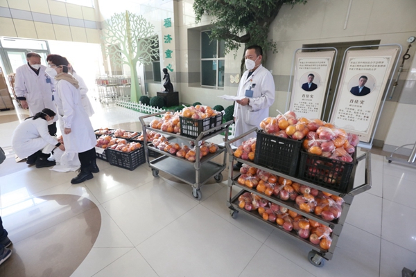黑龍江經(jīng)濟(jì)網(wǎng)訊(魏然 李麗 祝東 梁新立) 12月7日,在哈爾濱醫(yī)科大學(xué)附屬哈爾濱兒童醫(yī)院,30箱總重700多斤的蘋果和桔子,被一箱箱運(yùn)進(jìn)住院處病房,由行政后勤人員送到每個(gè)病房患兒家庭手中,讓在院的孩子們補(bǔ)充營(yíng)養(yǎng)。