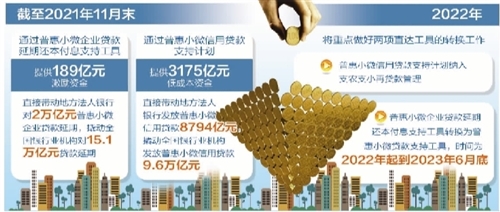 數(shù)據(jù)顯示,截至2021年11月末,人民銀行通過普惠小微企業(yè)貸款延期還本付息支持工具,提供了189億元激勵(lì)資金,直接帶動(dòng)地方法人銀行對(duì)2萬億元普惠小微企業(yè)貸款延期,撬動(dòng)全國銀行業(yè)機(jī)構(gòu)對(duì)15.1萬億元貸款延期。人民銀行通過普惠小微信用貸款支持計(jì)劃提供3175億元低成本資金,直接帶動(dòng)地方法人銀行發(fā)放普惠小微信用貸款8794億元,撬動(dòng)全國銀行業(yè)機(jī)構(gòu)發(fā)放普惠小微信用貸款9.6萬億元,取得了明顯的效果。
