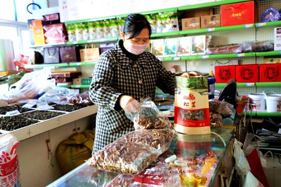 藍領山特產(chǎn)品店經(jīng)營業(yè)主高桂杰正在為客戶備貨。