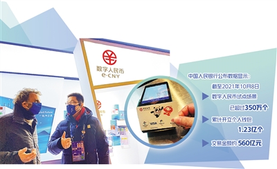 2017年起,人民銀行與商業(yè)銀行、互聯(lián)網(wǎng)公司等合作,共同進行數(shù)字人民幣研發(fā)。2019年末,數(shù)字人民幣開始試點,目前,人民銀行已經(jīng)在深圳、蘇州、雄安、成都、上海、海南、長沙、西安、青島、大連等地和2022年北京冬奧會場景開展數(shù)字人民幣試點。中國人民銀行公布的數(shù)據(jù)顯示,截至2021年10月8日,數(shù)字人民幣試點場景已超過350萬個,累計開立個人錢包1.23億個,交易金額約560億元。