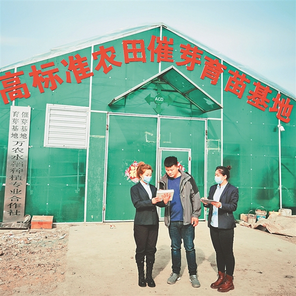 佳木斯撫遠市建國村王立君正在辦理“生產托管貸”。黑龍江日報全媒體記者 張翎攝