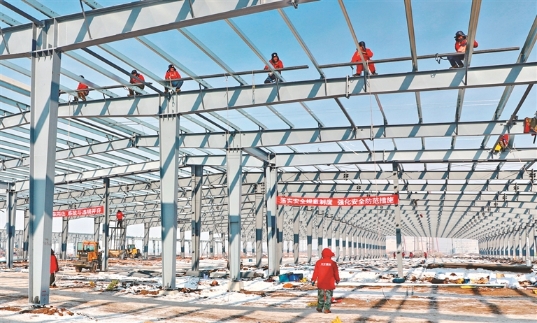 工人進行鋼結(jié)構(gòu)安裝作業(yè)。宋燕軍 黑龍江日報全媒體記者 姚建平攝