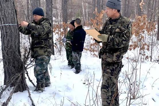 清晨,隊員們迎著初升太陽進山作業(yè);午間,大家坐在雪地上喝著涼水配著面包、饅頭、火腿腸、榨菜充饑;森林調(diào)查環(huán)境雖然艱苦,但沒有一個人叫苦叫累,工作一天下來,隊員們的衣服和鞋都濕透了;傍晚,隊員們回到單位還要加班加點的統(tǒng)計匯總當天的調(diào)查數(shù)據(jù),力爭用最短的時間完成森調(diào)任務(wù)。