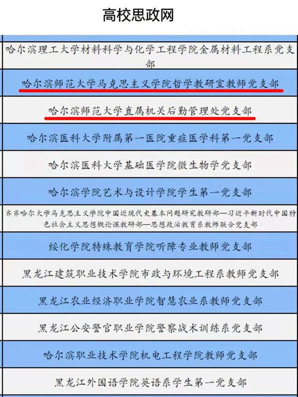 黑龍江經(jīng)濟(jì)網(wǎng)訊(黑龍江日報(bào)全媒體見習(xí)記者董廣碩 商祺)根據(jù)《教育部辦公廳關(guān)于開展第三批新時代高校黨建示范創(chuàng)建和質(zhì)量創(chuàng)優(yōu)工作的通知》要求,經(jīng)哈爾濱師范大學(xué)校黨委組織申報(bào)、省級黨委教育工作部門推薦、資格審查、專家評審、教育部黨的建設(shè)和全面從嚴(yán)治黨工作領(lǐng)導(dǎo)小組成員單位集中審議、結(jié)果公示,遴選產(chǎn)生了全國黨建工作示范高校、標(biāo)桿院系和樣板支部。哈爾濱師范大學(xué)馬克思主義學(xué)院哲學(xué)教研室教師黨支部和直屬機(jī)關(guān)后勤管理處黨支部獲批“全國黨建工作樣板支部”。到目前為止,哈爾濱師范大學(xué)共獲批1個全國黨建工作標(biāo)桿院系,4個全國黨建工作樣板支部,1個全國研究生樣板黨支部,獲批數(shù)量居于省屬高校首位。