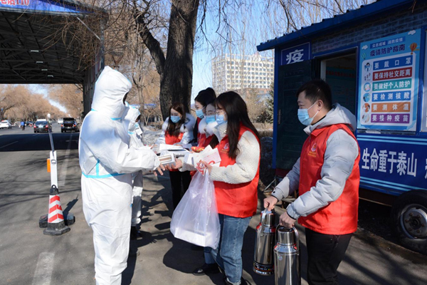 樺川縣稅務(wù)局組成青年志愿服務(wù)隊,攜帶保溫杯、熱水、水果等慰問品,深入樺川縣入口防疫卡點(diǎn),慰問堅守在疫情防控一線的工作人員。青年志愿者們詳細(xì)詢問卡點(diǎn)防寒保暖、飲食安排等情況,對他們舍小家為大家、無私奉獻(xiàn)、敢于擔(dān)當(dāng)?shù)木窠o予高度贊揚(yáng),向他們送去關(guān)心和問候,叮囑他們做好自身防護(hù),合理安排休息時間。