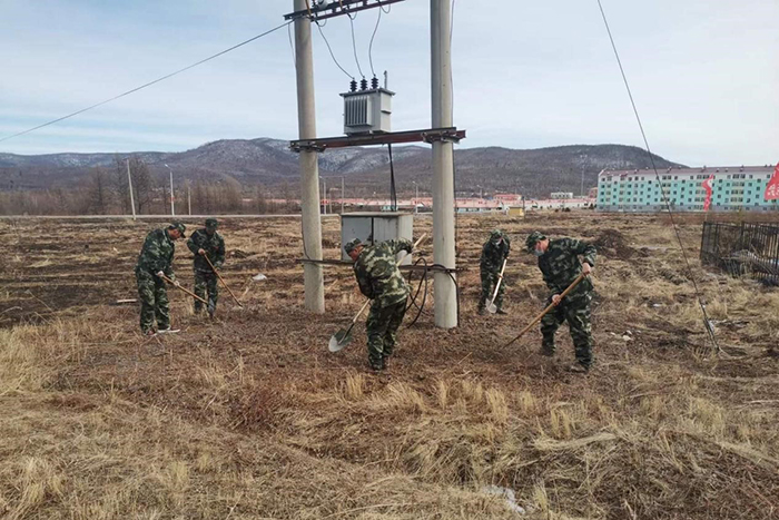 塔源林場組織專業(yè)隊隊員清理電力設施下方雜物,排除火險隱患(孫秀艷 攝)